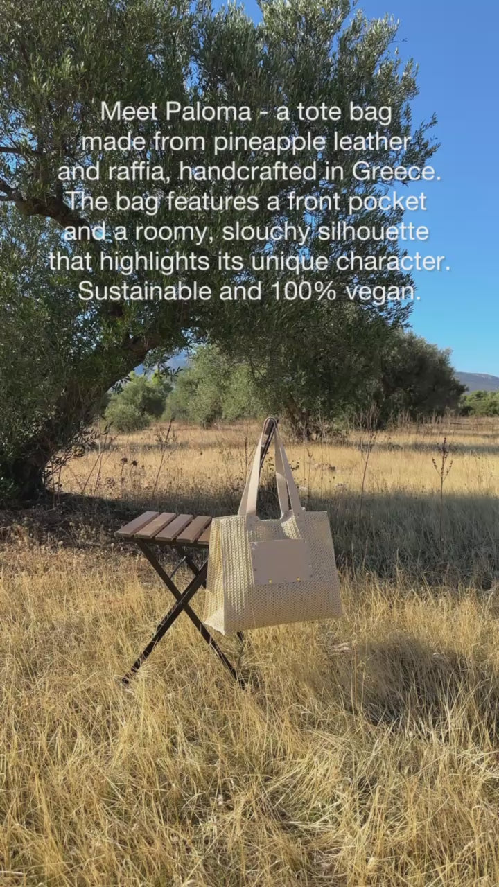 Meet Paloma - a tote bag, created from pineapple leather and natural raffia, featuring a light gold hardware. Made in Greece.